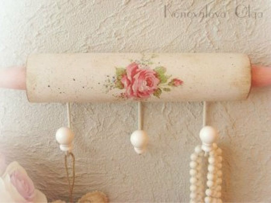 Por último, podemos transformar utensilios habituales de la cocina para adaptarlos al ámbito de la decoración y la organización. Ejemplo de ello son estos trabajos fabricados con un rodillo de cocina y varias tablas de madera.
