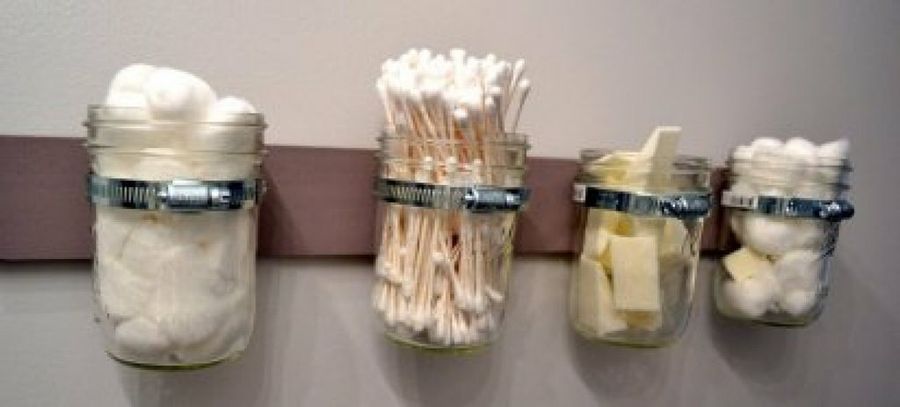 La primera idea consiste en reciclar tubos de PVC, que podemos pegar en las puertas del mueble para colocar, por ejemplo, la plancha del pelo, cepillos..